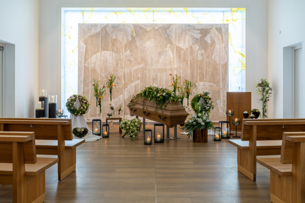 Blumen sind ein symbolischer Teil des Abschieds. Wir kümmern uns darum, dass die Blumenarrangements Ihren Wünschen entsprechen und den Moment des Abschieds auf respektvolle Weise begleiten.